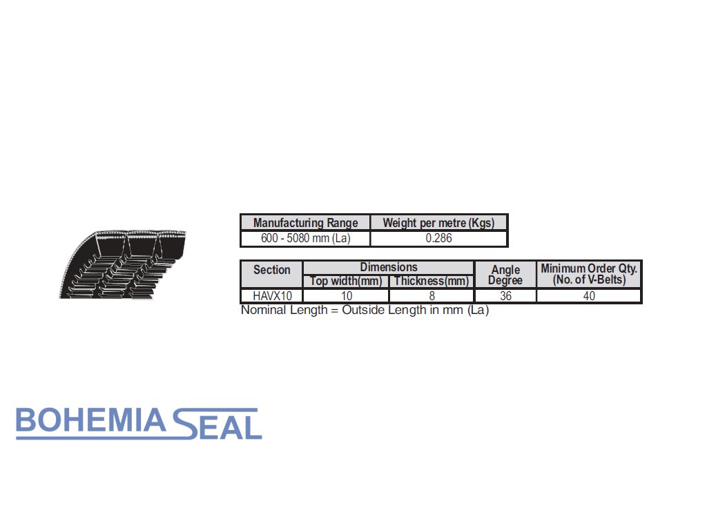 Kfz-Keilriemen Mehrfach 2-AVX10 nach DIN7753, Hersteller PIX, Marke PIX-FORCE. Breite des Keils auf der Oberfläche 10 mm, Höhe des Keils 8. Gemessen hauptsächlich entlang der Oberfläche.