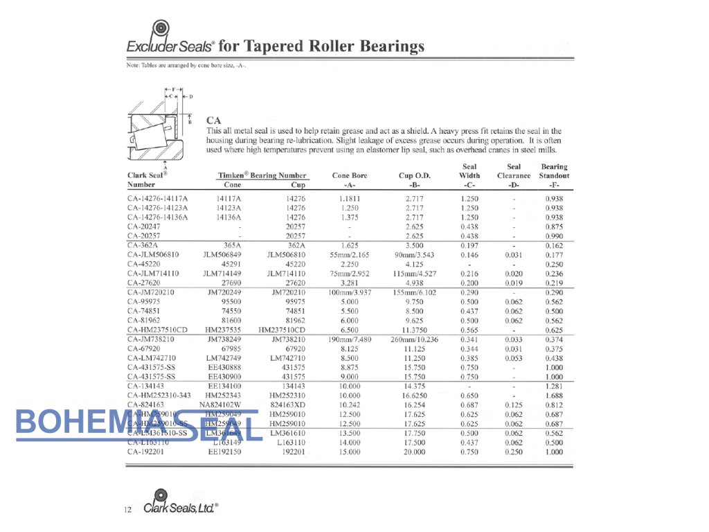 CA Modell, Clark Seals, Excluder Seals für Kegelrollenlager