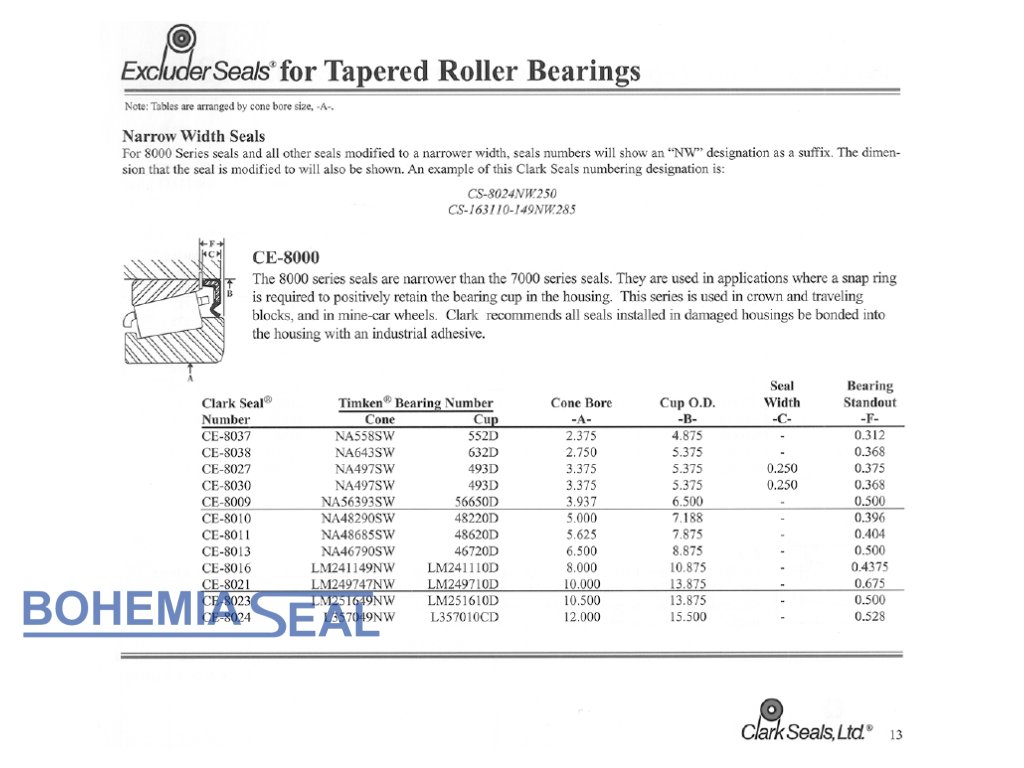 CE-8000 Modell, Clark Seals, Excluder Seals für Kegelrollenlager