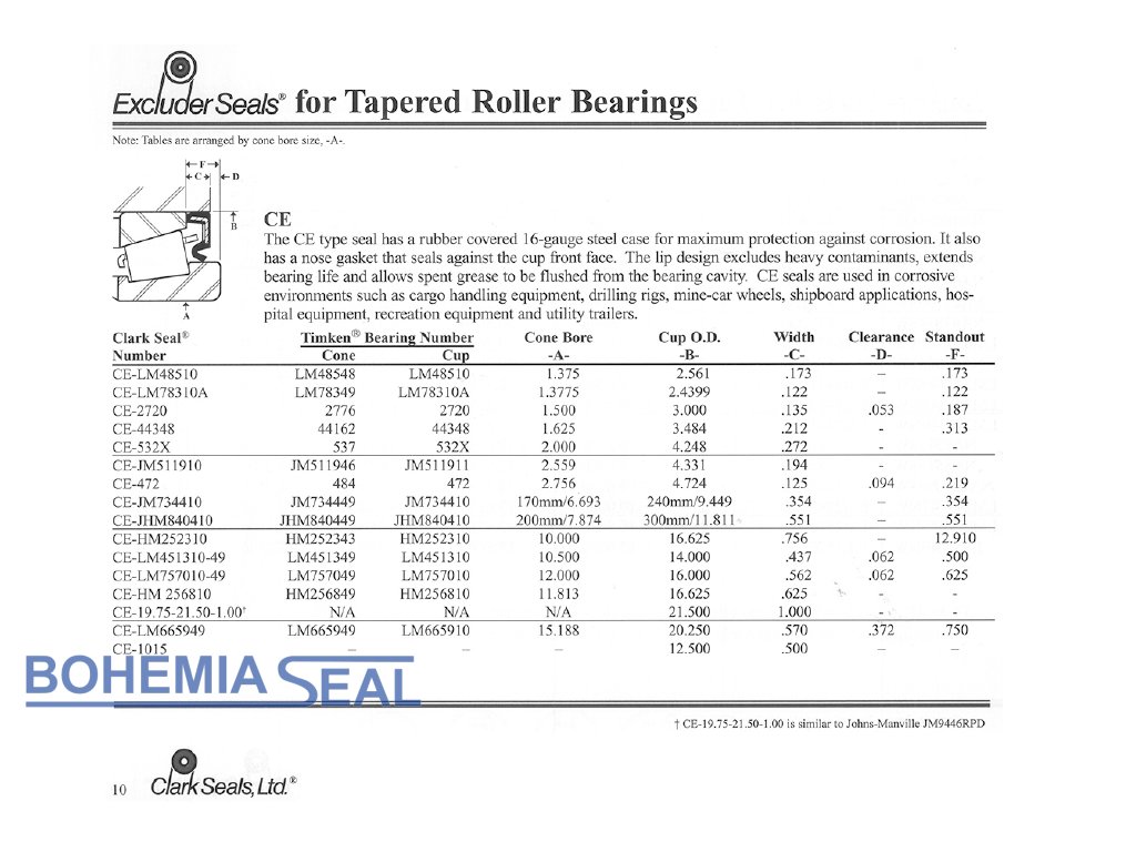 CE Modell, Clark Seals, Excluder Seals für Kegelrollenlager