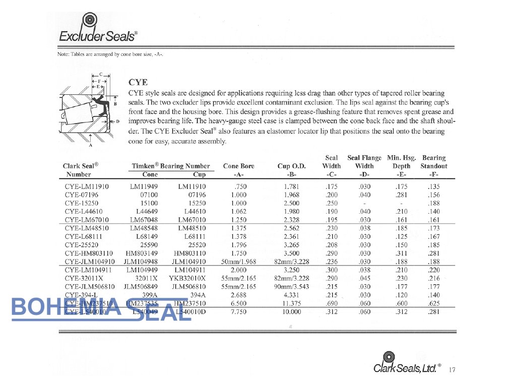 CYE Modell, Clark Seals, Excluder Seals für Kegelrollenlager