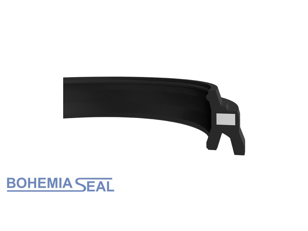 Ein einfachwirkendes Dichtelement aus Elastomerwerkstoff FKM mit innenliegender Metallverstärkung für den Einsatz in offenen Nuten. FKM-Material ist beständig gegen hohe Temperaturen und Chemikalien.