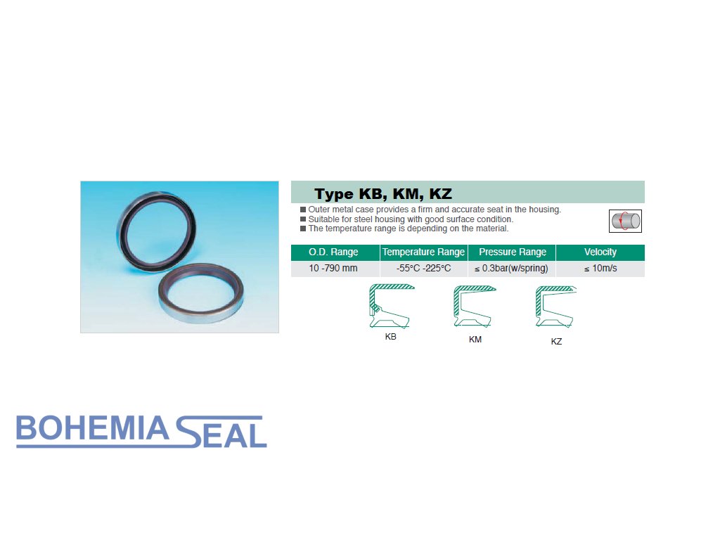 Typ WBOS - KB / KM / KZ ist ein Typ ohne Feder, mit plattiertem Außendurchmesser, mit Pulverkante. Das NBR-Material ist bis 100°C geeignet.
