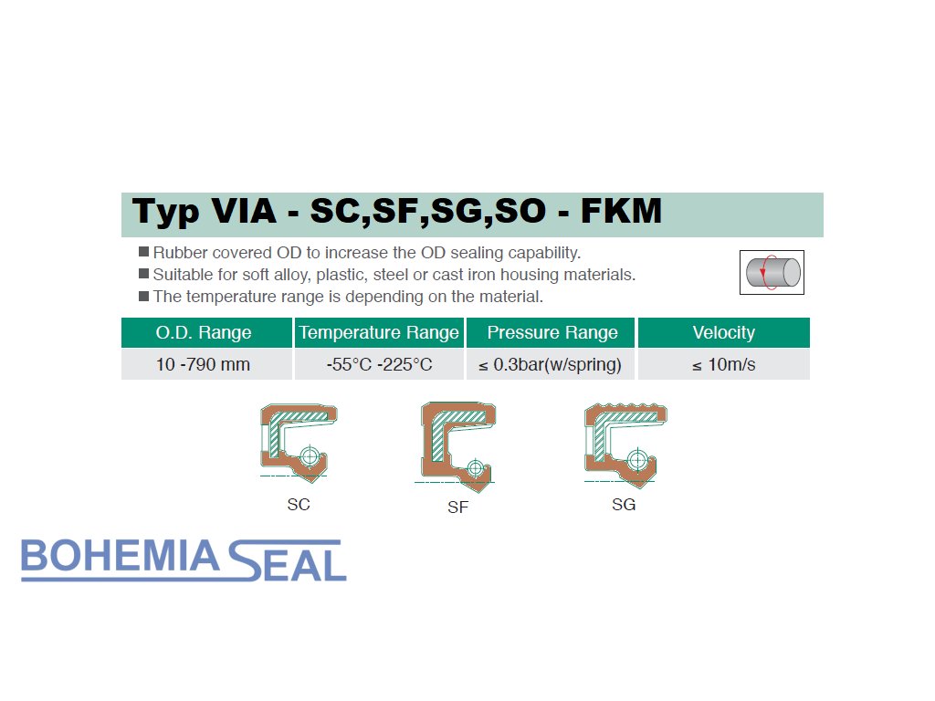 Typ VIA – SC FKM / SF FKM / SG FKM / SO FKM ist ein Typ mit gummiertem Außenumfang zur besseren Abdichtung des Außendurchmessers, ohne Staublippe.