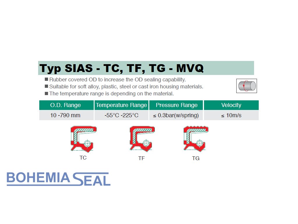 SIAS-Typ – TC MVQ / TF MVQ / TG MVQ ist der Typ mit einem gummierten Außenumfang zur besseren Abdichtung des Außendurchmessers und einer Staublippe.