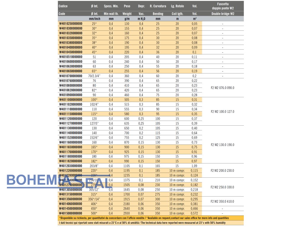 Schlauch aus transparenter Kupferbasis. Konstante Wandstärke 0,4 mm für alle Durchmesser. Sehr robust, flexibel und axial komprimierbar (ca. 5:1) für einfache Handhabung und kostengünstige Lagerung und Transport. Kann bei Erdung leitend sein (R< 02 Ohm/Meter) verstärkend Spiralen.
