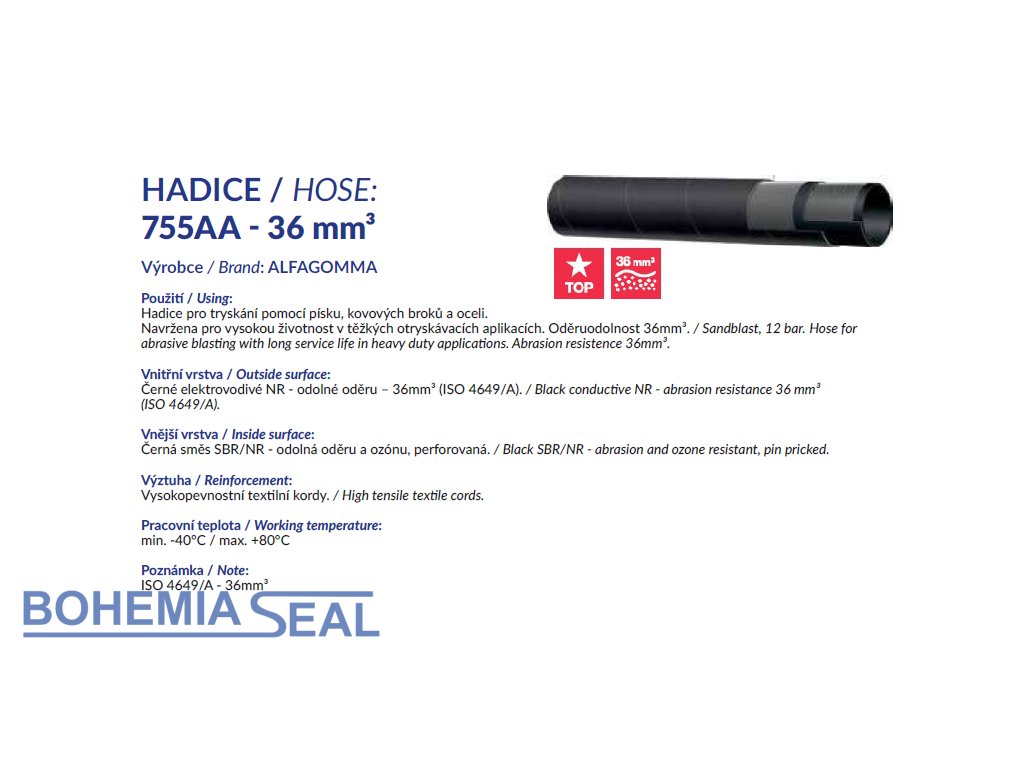 Schlauch 32 / 48, 755AA, zum Strahlen und Transportieren abrasiver Materialien, ALFAGOMMA