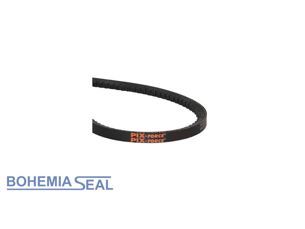 Kfz-Keilriemen AVX 13 nach DIN7753, Hersteller PIX, Marke PIX-FORCE. Die Breite des Keils auf der Oberfläche beträgt 13 mm, die Höhe des Keils beträgt 10 mm. Hauptsächlich entlang der Oberfläche gemessen.