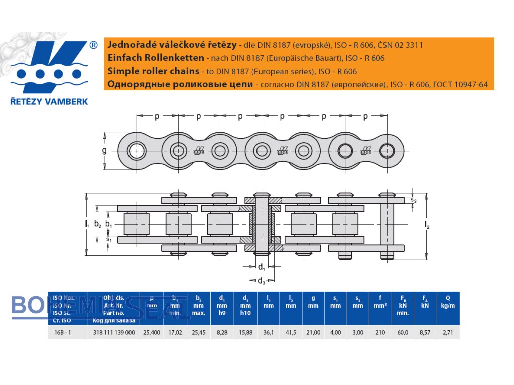 Krummes (gebrochenes) Rollenkettenglied 16 B-1 , VAMBERK