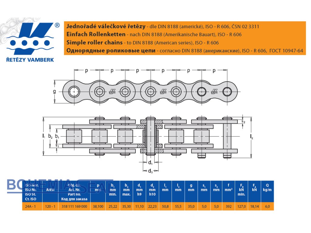 Krummes (gebrochenes) Rollenkettenglied ASA120-1 / 24 A-1 , VAMBERK