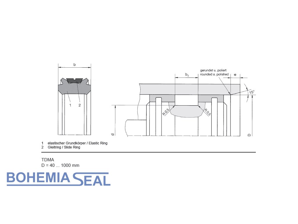 Typ: Kolbenmanschette doppelt wirkend 50 x 40 x 15 TDMA PU/PTFE+Bronze (010408), HUNGER