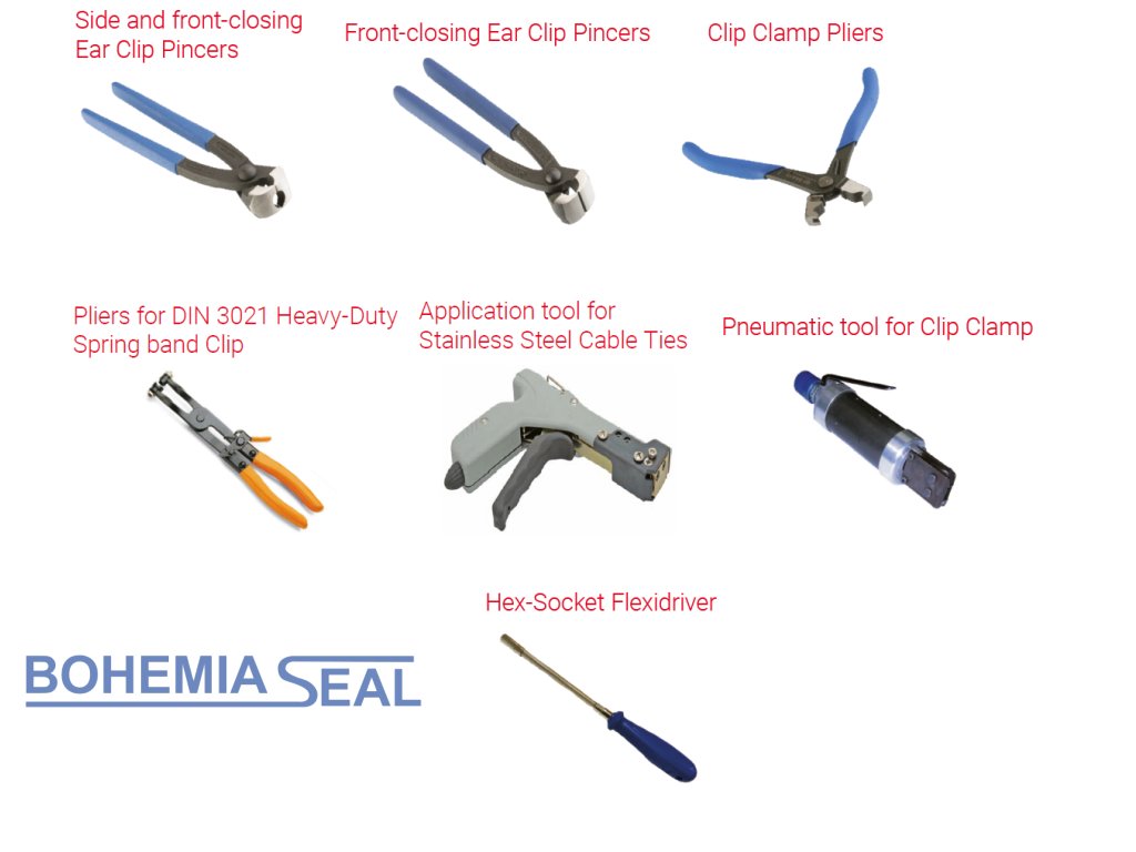 Zange für Deformationslaschenclips, für seitlichen und direkten Einsatz