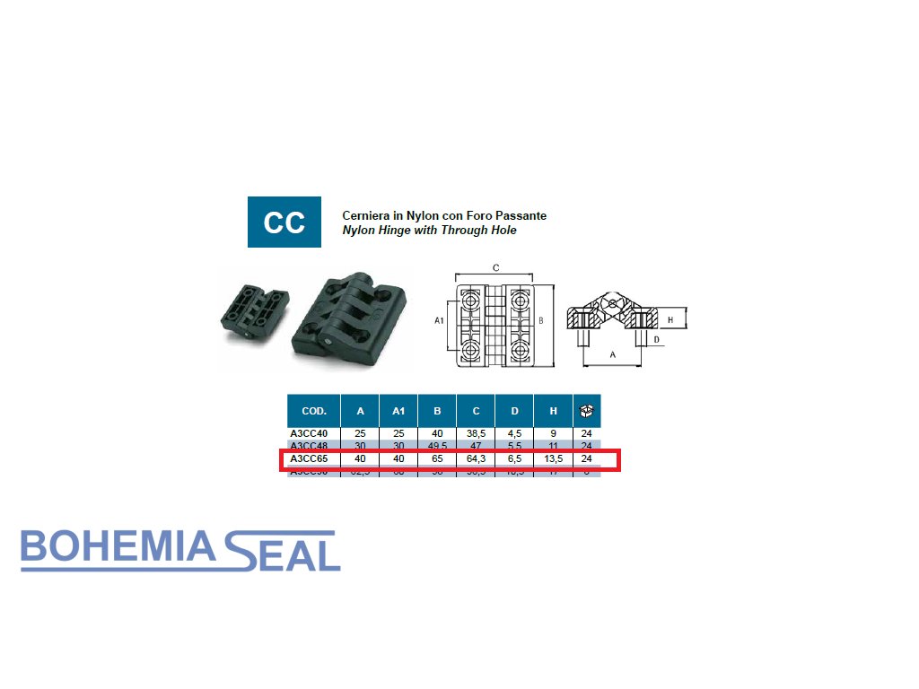 Nylonscharnier mit Durchgangsloch. Italienischer Hersteller GeTech.