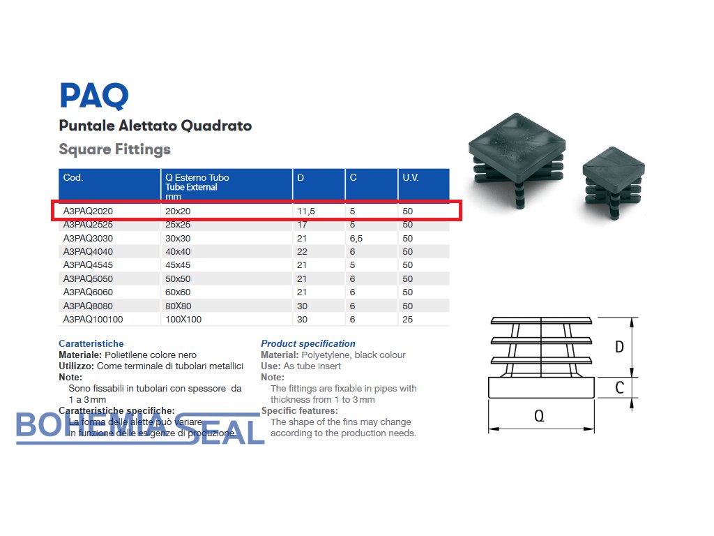Schutzende der quadratischen Polyethylenlatte A3PAQ, 20mm x 20mm, GeTech A3PAQ2020