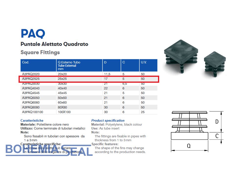 Schutzende der quadratischen Polyethylenlatte A3PAQ, 25mm x 25mm, GeTech A3PAQ2525