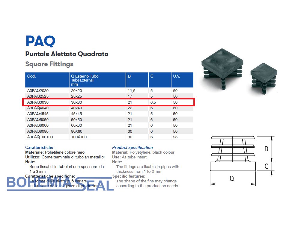 Schutzende der quadratischen Polyethylenlatte A3PAQ, 30mm x 30mm, GeTech A3PAQ3030