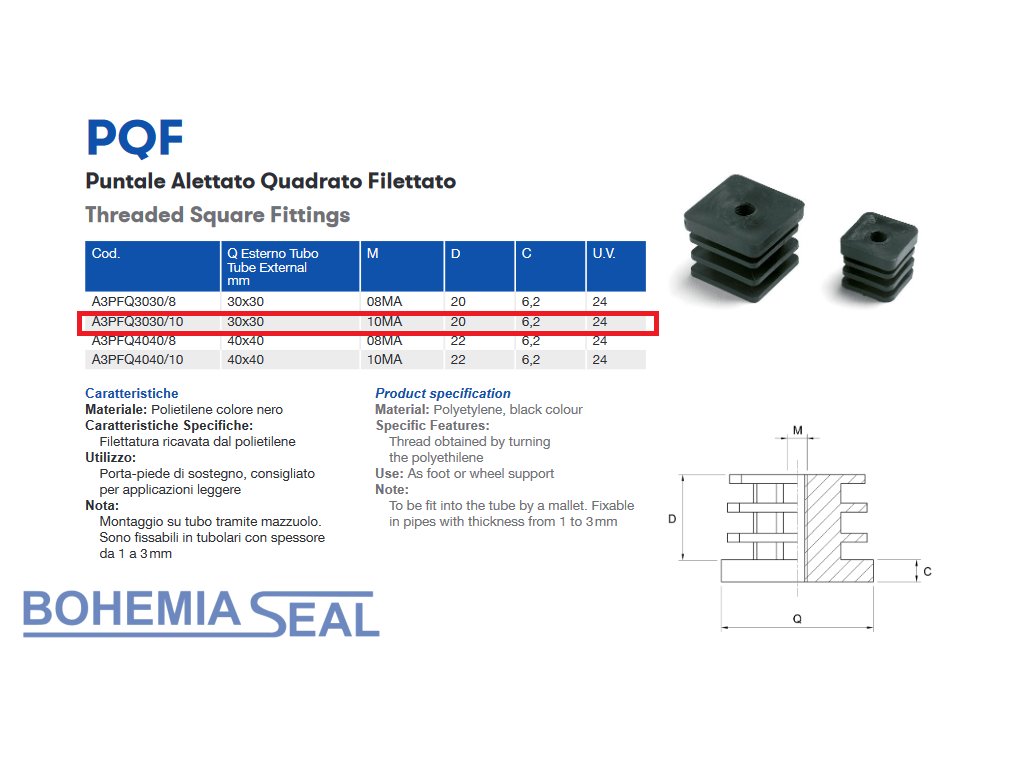 Schützendes Ende des quadratischen, durch die Wand gehenden Polyethylens A3PQF, 30mm x 30mm, Loch 10mm, GeTech A3PQF3030/10