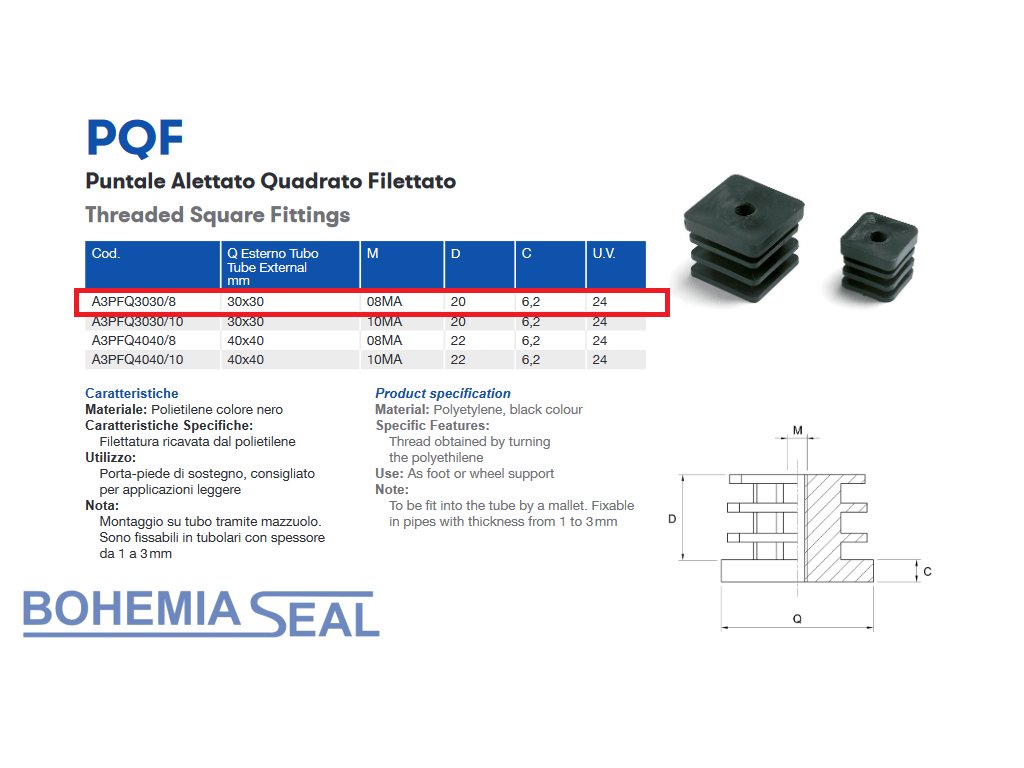 Schützendes Ende des quadratischen, durch die Wand gehenden Polyethylens A3PQF, 30mm x 30mm, Loch 8mm, GeTech A3PQF3030/8
