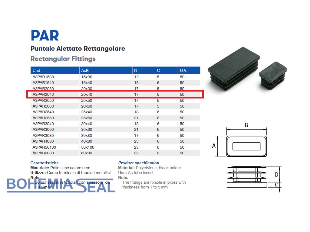 Schutzende der rechteckigen Polyethylenfolie A3PAR, 20mm x 40mm, GeTech A3PAR2040