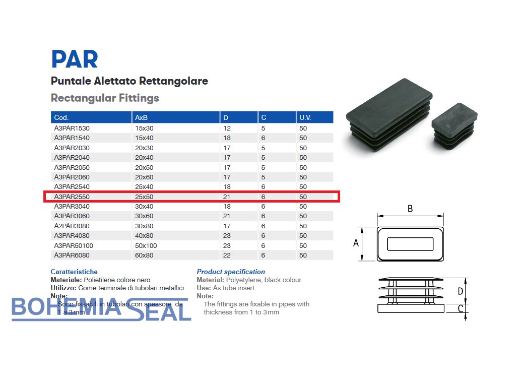 Schutzende der rechteckigen Polyethylenfolie A3PAR, 25mm x 50mm, GeTech A3PAR2550