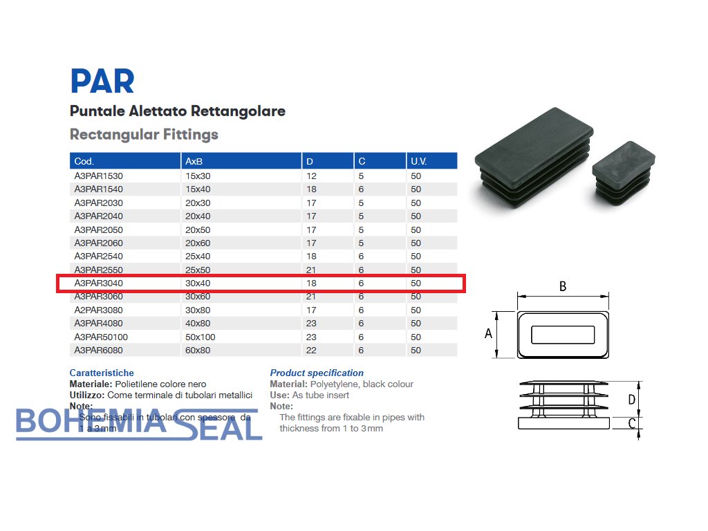Schutzende der rechteckigen Polyethylenfolie A3PAR, 30mm x 40mm, GeTech A3PAR3040