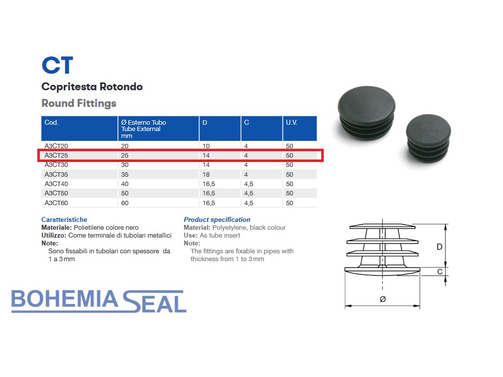 Schützendes Ende des schwarzen Polyethylenrohrs A3CT, für durchschnittlich 25mm, GeTech A3CT25