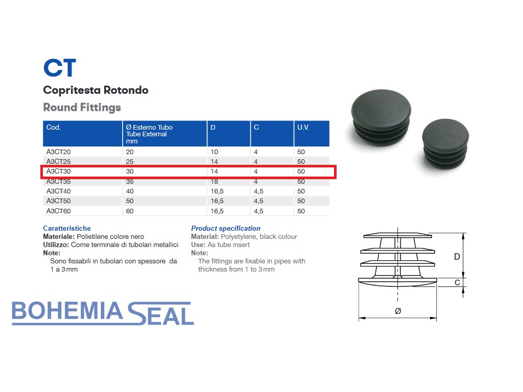 Schützendes Ende des schwarzen Polyethylenrohrs A3CT, für durchschnittlich 30mm, GeTech A3CT30