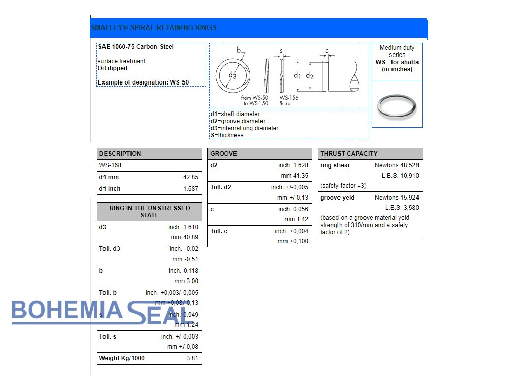 Sicherungsring spirale WS-168 auf der Welle, SMALLEY, 42,85mm x 1,24mm , material SAE1070-90