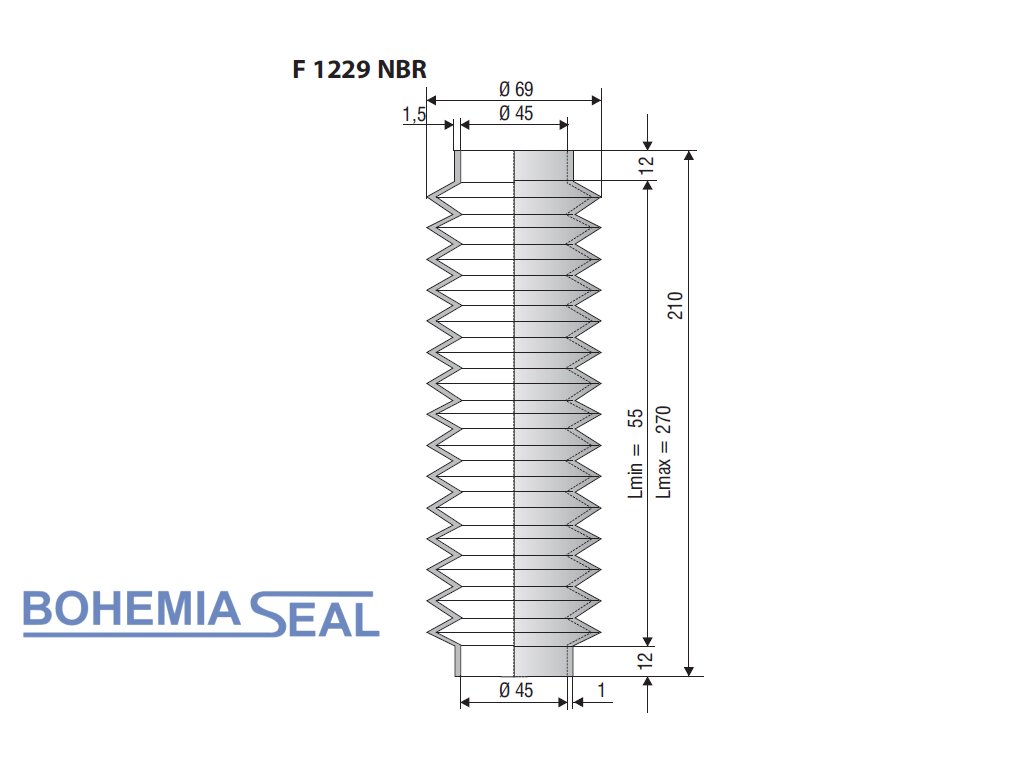 Weitere Anschlussdurchmesser 45 x 45, Länge 210, počet vln 15 , NBR , DYNATECT F1229 NBR