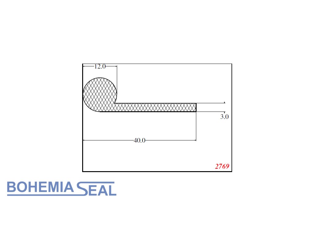 Typ: Profil P-vollständig , AM-2769 , 40mm x 12mm , MVQ60ShA Weiß , FDA