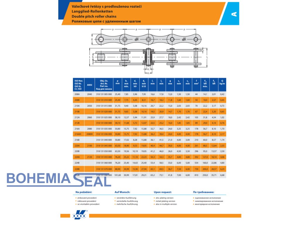 Typ: 210B Rollenkette mit erweiterten Tonhöhe, Tonhöhe 31,75mm, Řetězy Vamberk