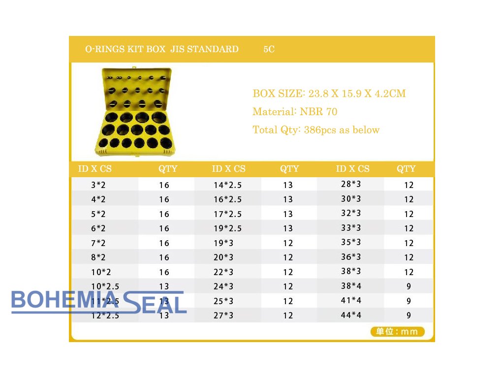 Set (Box) o-Ringe, Ausführung 5C , 386Stck, NBR70ShA, JIS-B-2401