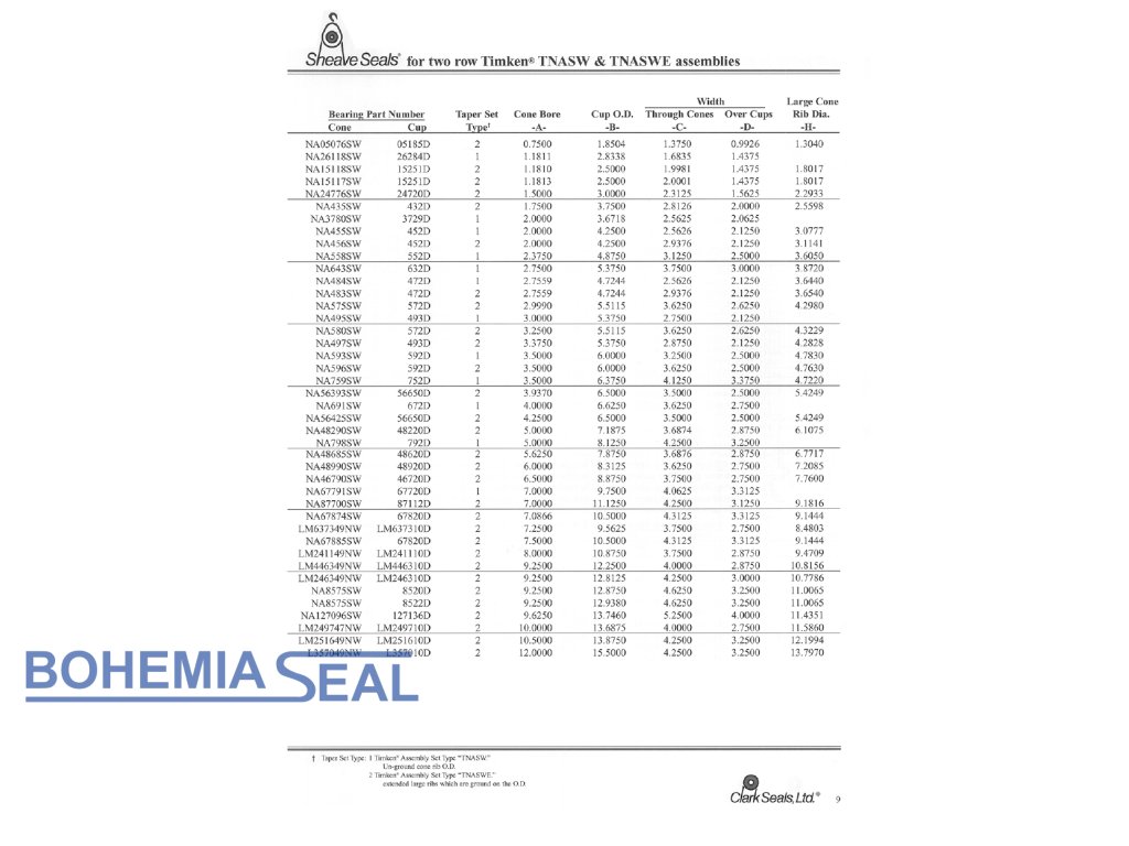 Sheave Seals, Clark Seals, für zweireihig Timken TNASW und TNASWE Aufstellungen