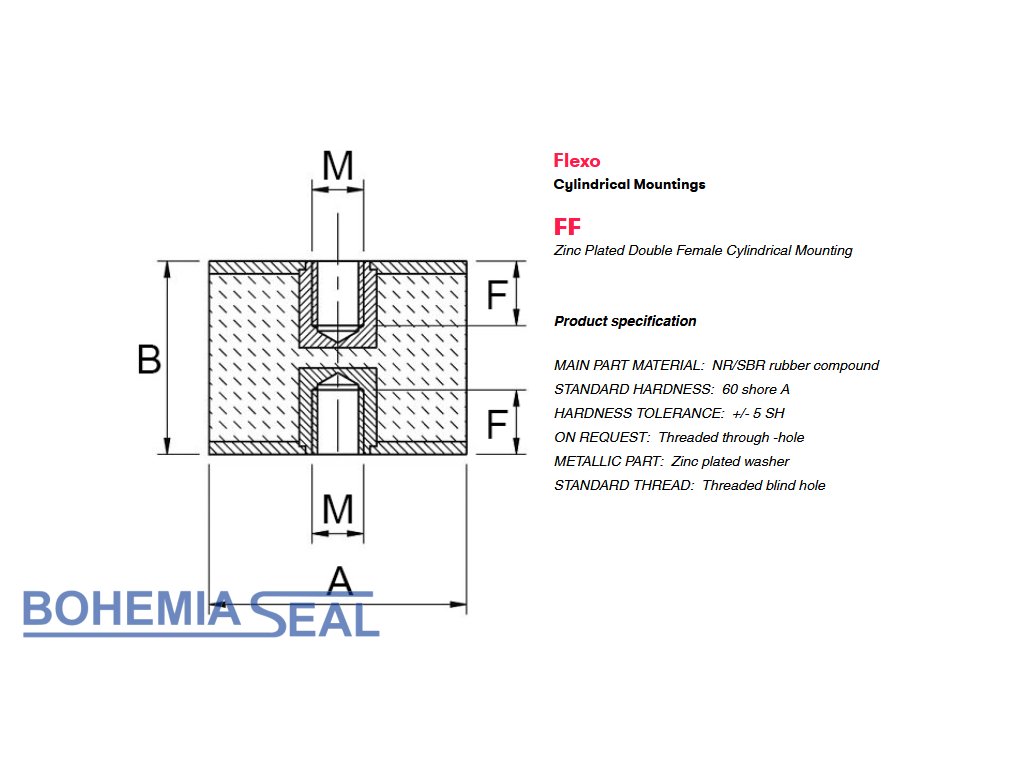 Zylindrischer Silentblock Typ 3 (Modell C), weiblich - weiblich.