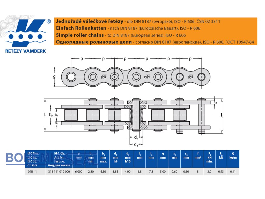 Verbindungsglied der Rollenkette 04 B-1 nach DIN 8187, Hersteller VAMBERK CHAIN.