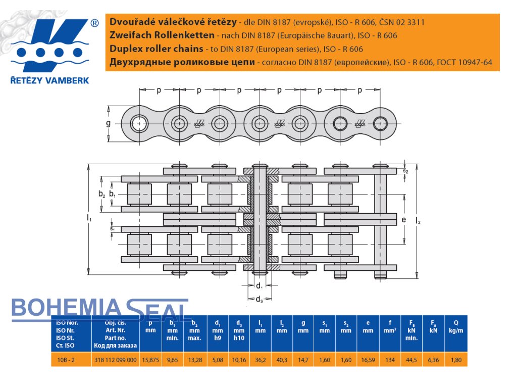 Verbindungsglied der Doppelrollenkette 10 B-2 nach DIN 8187, Hersteller VAMBERK CHAIN.