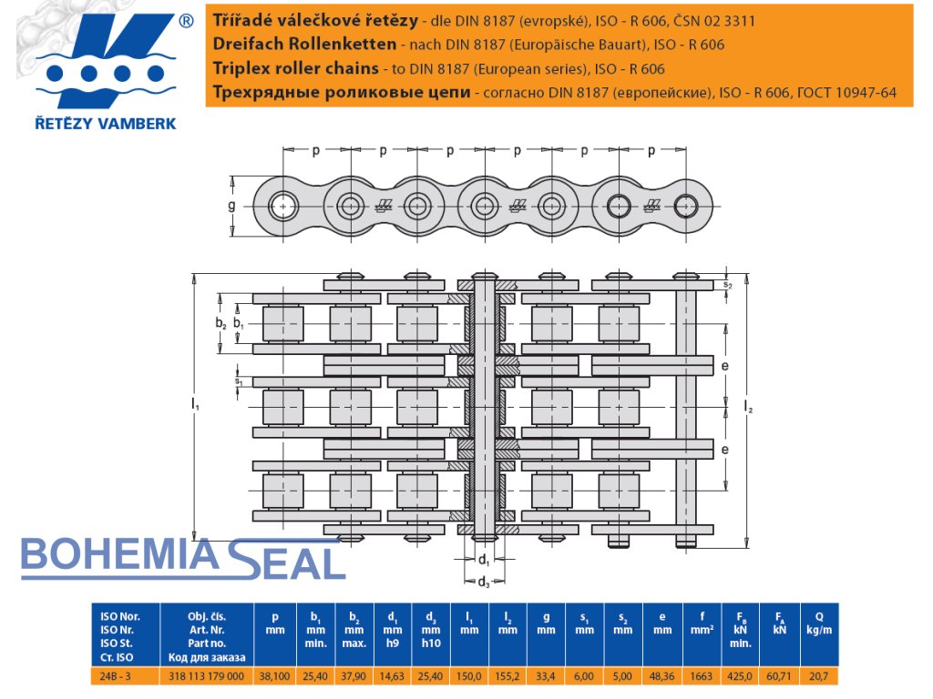 Verbindungsglied der Dreifachrollenkette 24 B-3 nach DIN 8187, Hersteller VAMBERK CHAIN.