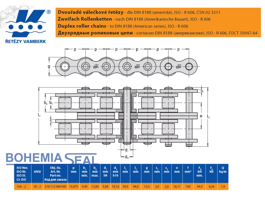 Rollenkettenglied ASA50-2 / 10 A-2 , VAMBERK