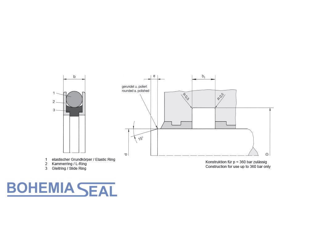 Typ: Kolbenstangendichtung doppelt wirkend 360 x 390 x 14,5 GGDI NBR / PTFE+Bronze / POM (010680) , Hunger