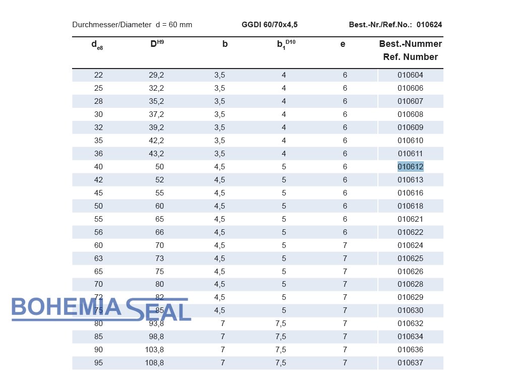 Typ: Kolbenstangendichtung doppelt wirkend 40 x 50 x 4,5 GGDI NBR / PTFE+Bronze / POM (010612) , Hunger