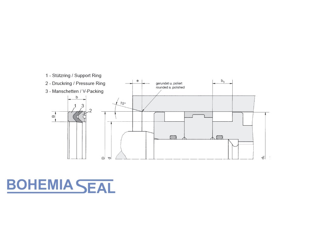 Typ: Kolbendichtung 1+1+1 25 x 15 x 8,9 DMD3 Textilkautschuk / NBR (073632), Hunger