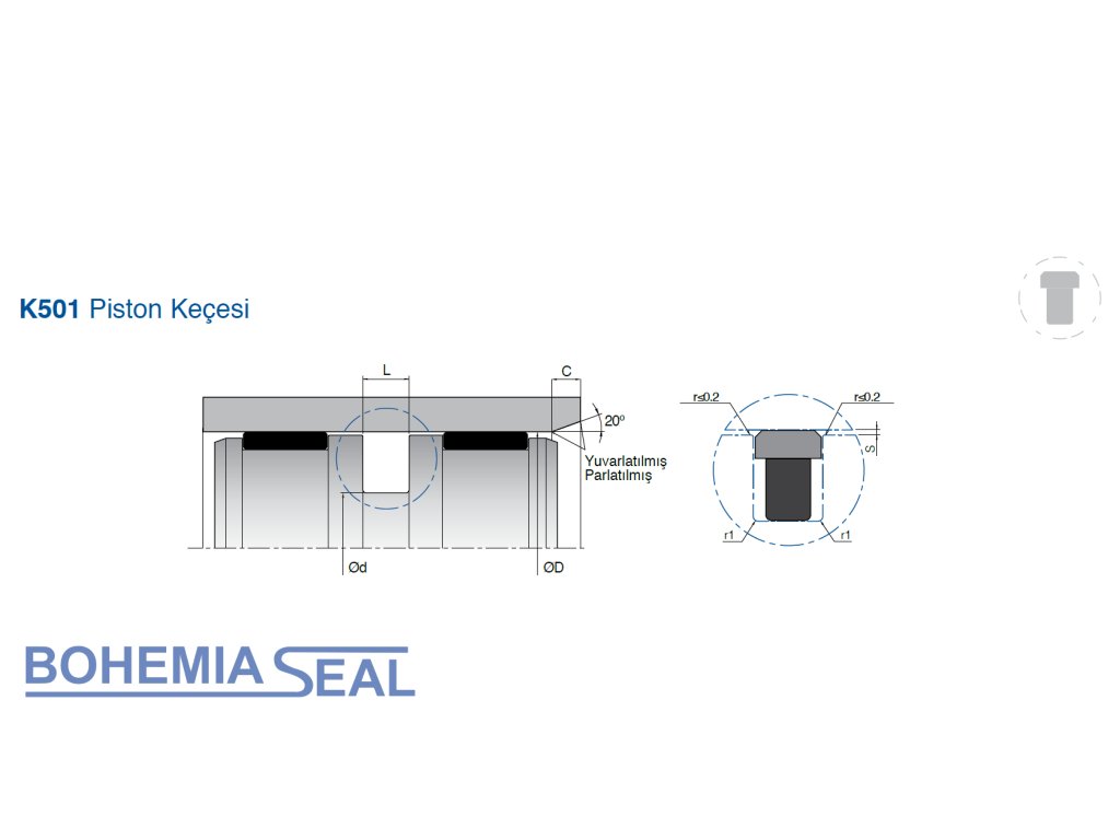 Die Kolbendichtung K501 besteht aus einem entsprechend zugeschnittenen thermoplastischen Dichtring auf „Z“ und einen rechteckigen Elastomerring – Energizer. Es bietet gute Abdichtung auch bei niedrigen Drücken. Abdichtung k< Spanne class="Q4iAWc" jsaction="click:E6Tfl,GFf3ac,tMZCfe; Kontextmenü:Nqw7Te,QP7LD; Mouseout:Nqw7Te; mouseover:E6Tfl,c2aHje" jsname="W297wb">Der Ring mit „Z“-Schnitt sorgt für eine hervorragende Abdichtung, ohne den Kontakt zur Rohroberfläche zu verlieren, selbst bei hohen und stoßartigen Drücken. Der Ring kann im Vergleich zu PTFE-Material bei größeren Extrusionsspalten betrieben werden und weist aufgrund des glasgefüllten thermoplastischen Materials eine hohe Festigkeit und Verschleißfestigkeit auf.