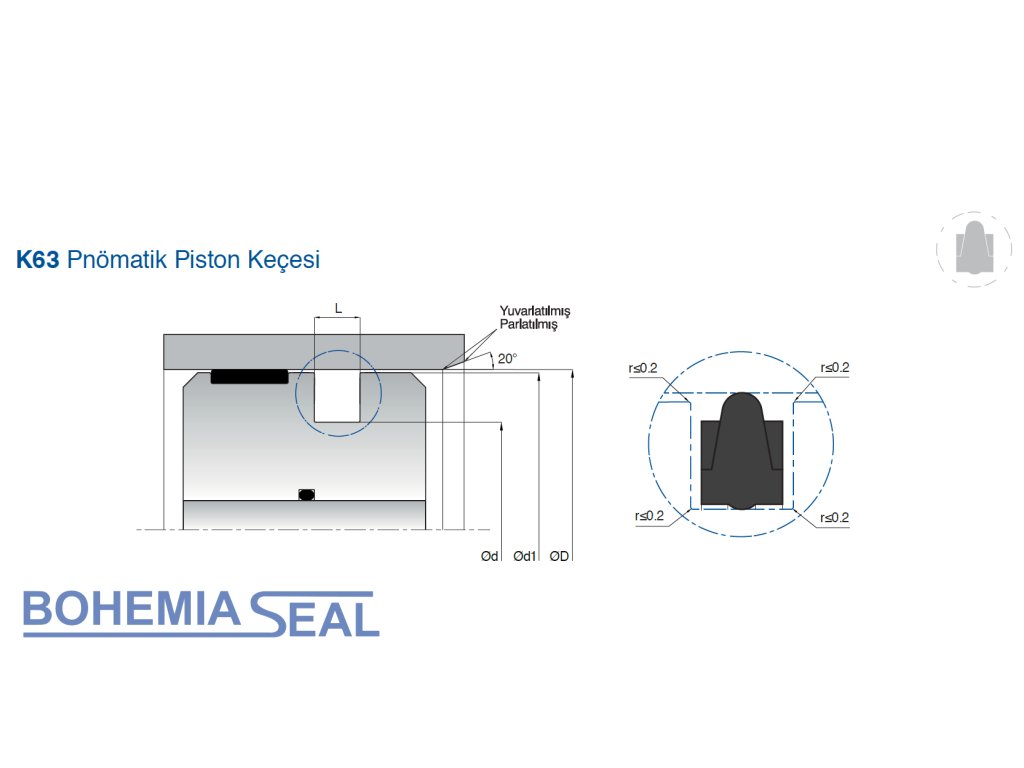 Die pneumatische doppeltwirkende Kolbendichtung K63 ist für den Einsatz in kleinen Nuten konzipiert.