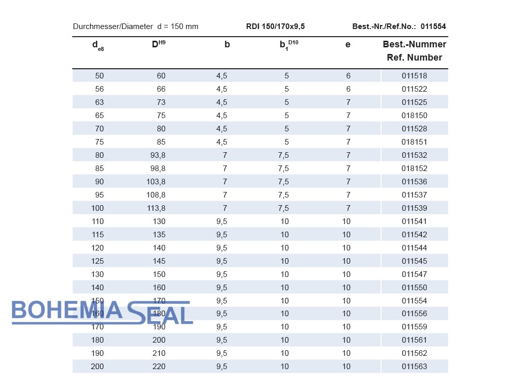 Typ: Rotationsdichtung 130 x 150 x 9,5 RDI NBR / PTFE+Bronze / POM (011547) , Hunger