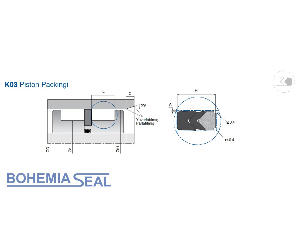 Einfachwirkender Kolbendichtungssatz K03 besteht aus einem thermoplastischen Druck Ring, mittlerer Dichtring aus Textilkautschuk und Stützring aus Textilkautschuk.