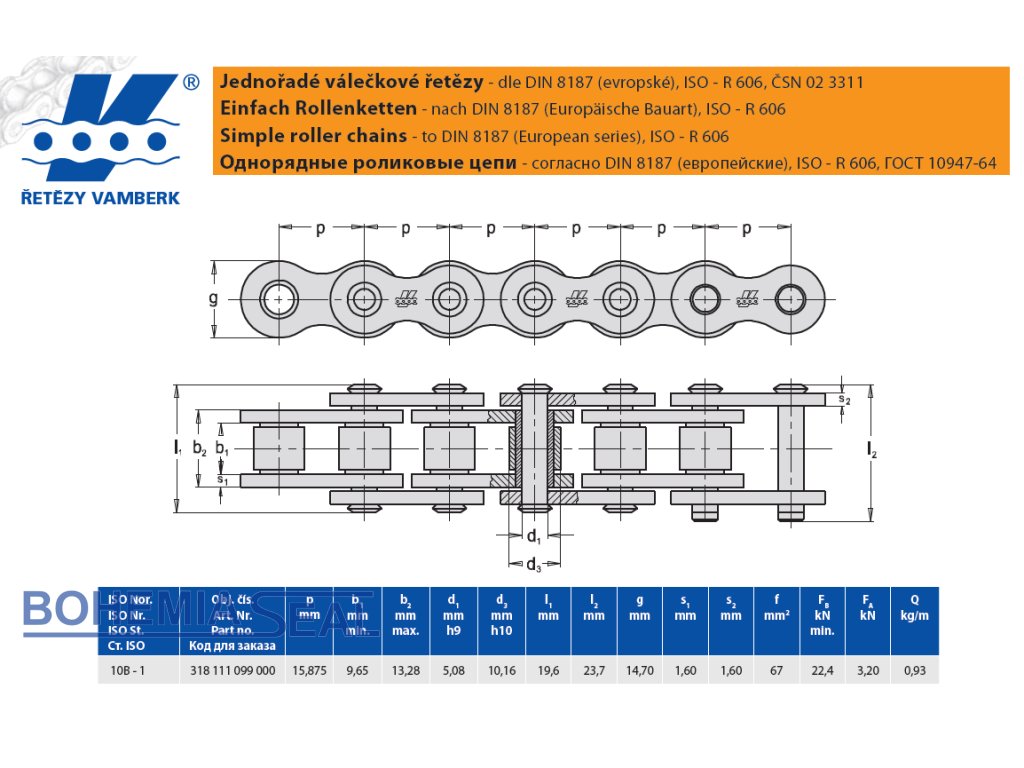 Rollenkette 10 B-1 nach DIN 8187, Hersteller VAMBERK CHAIN.