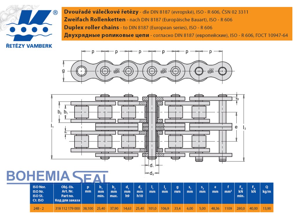Zweireihige Rollenkette 24 B-2 nach DIN 8187, Hersteller VAMBERK CHAIN.