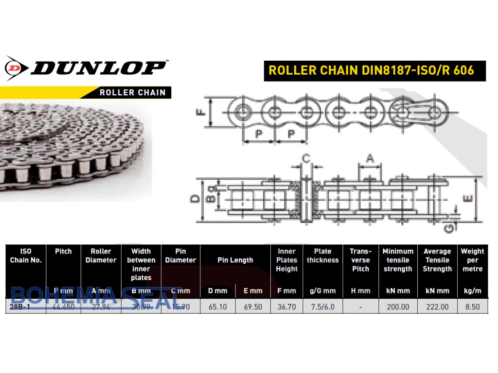 Rollenkette 28 B-1 nach DIN 8187, Marke DUNLOP.