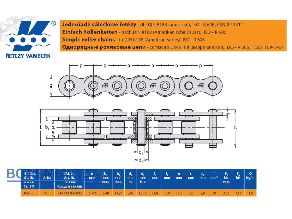 Rollenkette ASA50-1 / 10A-1 nach DIN 8188, Hersteller VAMBERK CHAIN.